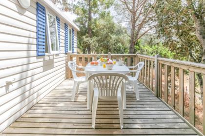 "Quelle vue sur la baie de Propriano ! Nous avons ébnéficié d'un reclassement dans un mobile home particulièrement bien situé, avec climatisation et literie de très bonne qualité. Gros plus pour la piscine et le restaurant"
